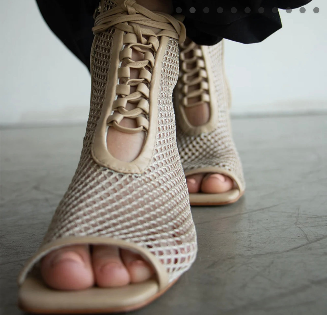 The Nola has Daniella Shevel's signature lacing detail, making her like no other pair you have ever seen before. The invisible zipper on the in the of the bootie allows you to quickly slip her on and off. Your go-to shoe for warm vacation, spring and summer weather.