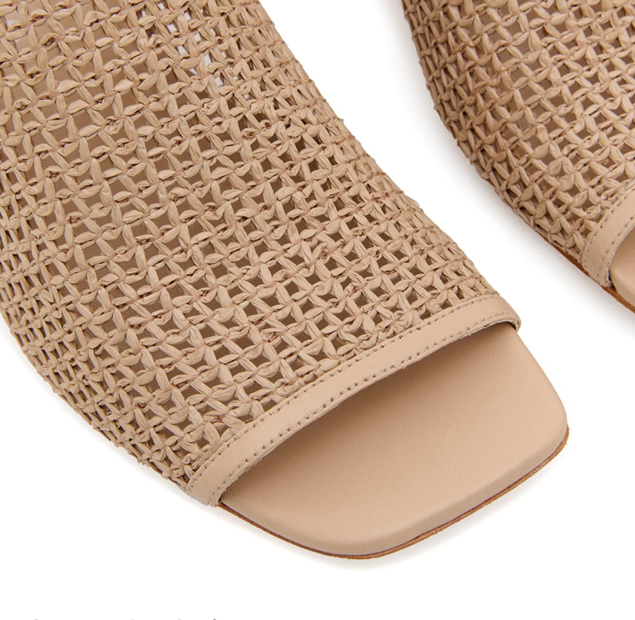 The raffia molds beautifully to a wide, average or narrow foot. The square toe shapes provides lots of room for your toes, while still looking slender and modern. The raffia is breathable and soft.